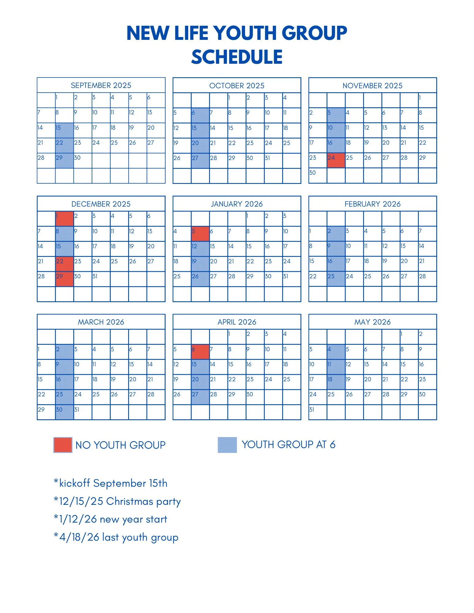 At New Life PCA, we’re committed to helping teens grow into young adults through the Word, mentorship, and community. Every Monday throughout the school year, we get together from 6:30 – 8 PM to talk about what’s going on in their lives, have fun, and study biblical principles together.
